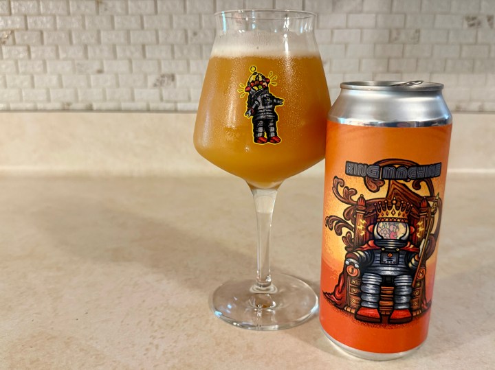 I’m having a hell of a combo from Tree House, King Machine, on today’s Brew Review, uniting two of their best, King Julius and Juice Machine. This 8.2% double IPA was brewed with Citra, Amarillo, Columbus, Simcoe, and Galaxy hops.