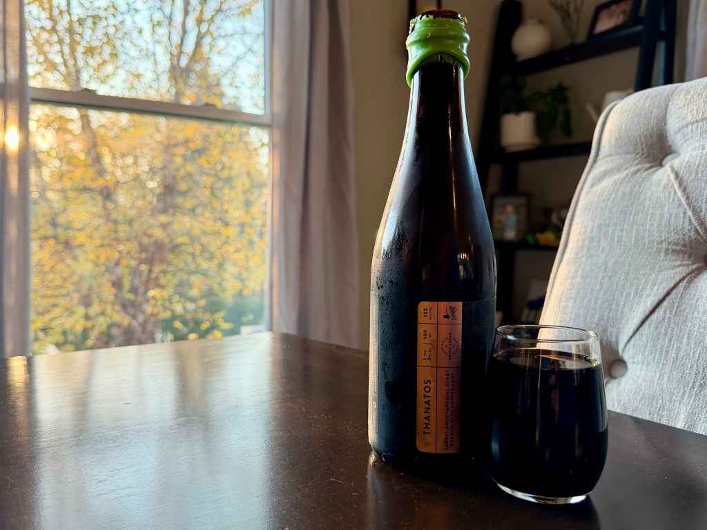 I’m throwing it back years on today’s Brew Review, with the Lime Green Wax version of Barrel Aged Thanatos from Mortalis. This 13% imperial stout was aged in Willet Rye barrels for 18 and 22 months and conditioned on cinnamon swirl coffee cakes.