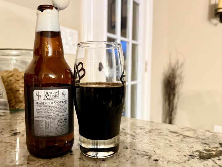 On tonight’s Brew Review, I’m having this year’s Grand Cru Snowball from Angry Chair for their anniversary, a 14% blend of imperial stouts aged in apple brandy barrels for 20 months, Wild Buck Rye barrels for 22 months, and Four Roses barrels for 49 months with coconut, chocolate, vanilla, and marshmallow.