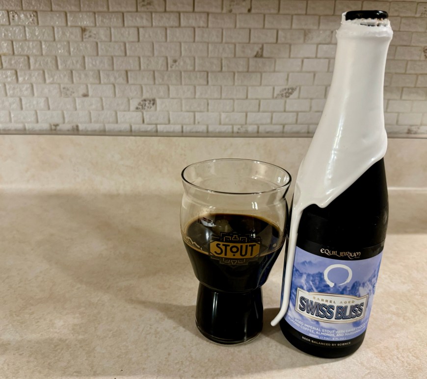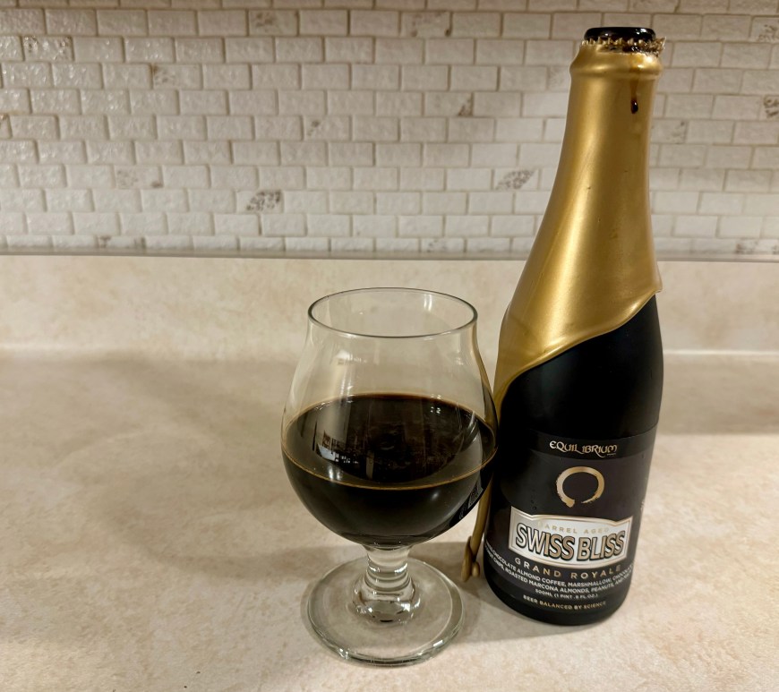 Yesterday I reviewed this year’s batch of Equilibrium’s Barrel Aged Swiss Bliss collab with Short Throw Brewing Co. and on today’s Brew Review, I’m having the Grand Royale version! This 14% imperial stout was aged 40 months in Heaven Hill barrels, and conditioned with Swiss Chocolate almond coffee, marshmallow, chocolate covered coconut chips, roasted Marcona almonds, peanuts, and macadamia nuts. Continue reading Brew Review – Equilibrium Brewery/Short Throw Brewing Co. Barrel Aged Swiss Bliss Grand Royale (Batch 3 2024)