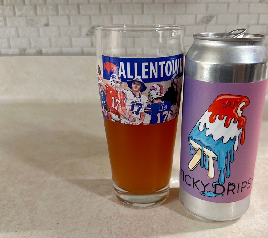 I’m trying a new brewery out of the finger lakes, Keuka Brewing Co. on tonight’s Brew Review. The bomb pop version of their Sticky Drips fruited pastry sour series has a 5.4% ABV and is flavored on cherry, lime, and blue raspberry. Continue reading Brew Review – Keuka Brewing Co. Sticky Drips – Bomb Pop